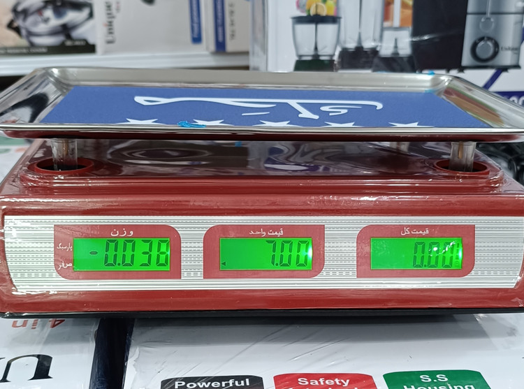 ۷ تا حافظه داره که میتونی قیمت کالاهای پرمصرفت رو ذخیره کنی تا هر دفعه توی شلوغی دوباره واردشون نکنی. صفر کردن و پارسنگ هم داره، تا راحت ظرف رو بذاری و وزن خالص رو بگیری.