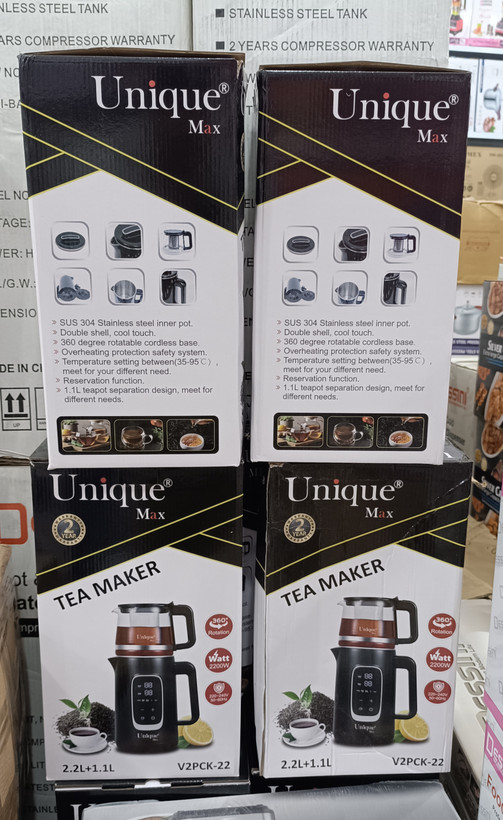 چایساز یونیک مدل V2PCK-22 یه انتخاب فوقالعادهست برای کسایی که میخوان همیشه یه چای خوشعطر و داغ دم دستشون باشه. کتریش از استیل ضدزنگ SUS304 ساخته شده، یعنی هم سالمه، هم طعم و بوی چای رو تغییر نمیده. بدنهی دولایه داره که موقع کار داغ نمیشه و با خیال راحت میتونی جابهجاش کنی.