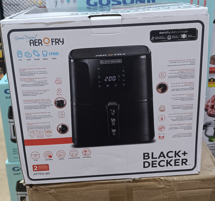 سرخکن دیجیتال BLACK+DECKER AF700_B5 با طراحی مدرن و ظرفیت بالا، انتخابی عالی برای خانوادههایی است که به غذاهای سالم و کمچرب اهمیت میدهند. این دستگاه با توان قدرتمند 1700 وات و بهرهگیری از تکنولوژی گردش سریع هوای داغ 360 درجه امکان پخت انواع غذاها را با حداقل روغن فراهم میکند؛ در نتیجه غذاهایی ترد، خوشطعم و رژیمی خواهید داشت.