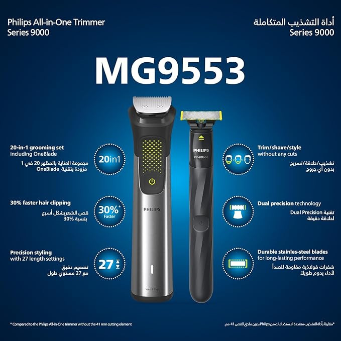 ماشین اصلاح سر و صورت فیلیپس مدل MG9553 مجهز به فناوری one blade