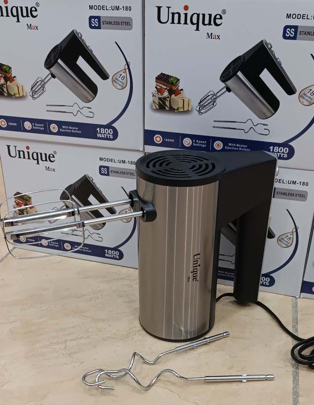 همزن بدون کاسه یونیک مدل UM-180 یه همراه حرفهای تو آشپزخونهست! با موتور پرقدرت 1800 وات و تیغههای فولادی ضخیم، حتی سختترین مواد رو هم بدون زحمت مخلوط میکنه. موتور مس خالص و پرگشتاورش باعث میشه کارایی بالا و دوام طولانی داشته باشه، و پرههای حلزونی خنککننده از داغ شدن جلوگیری میکنن.
